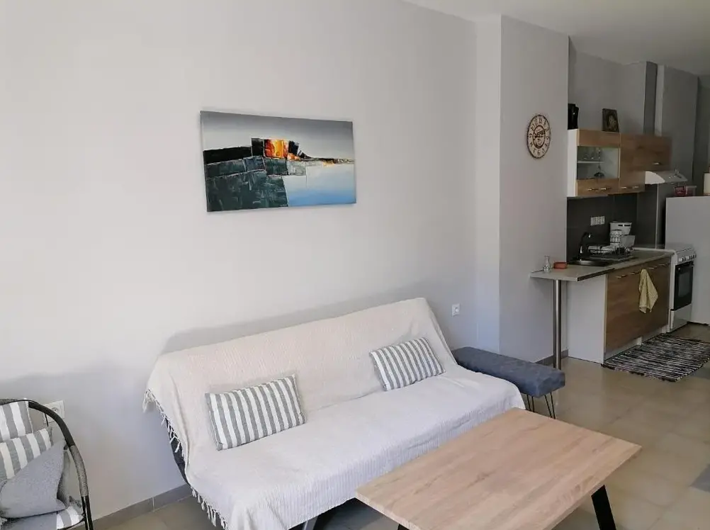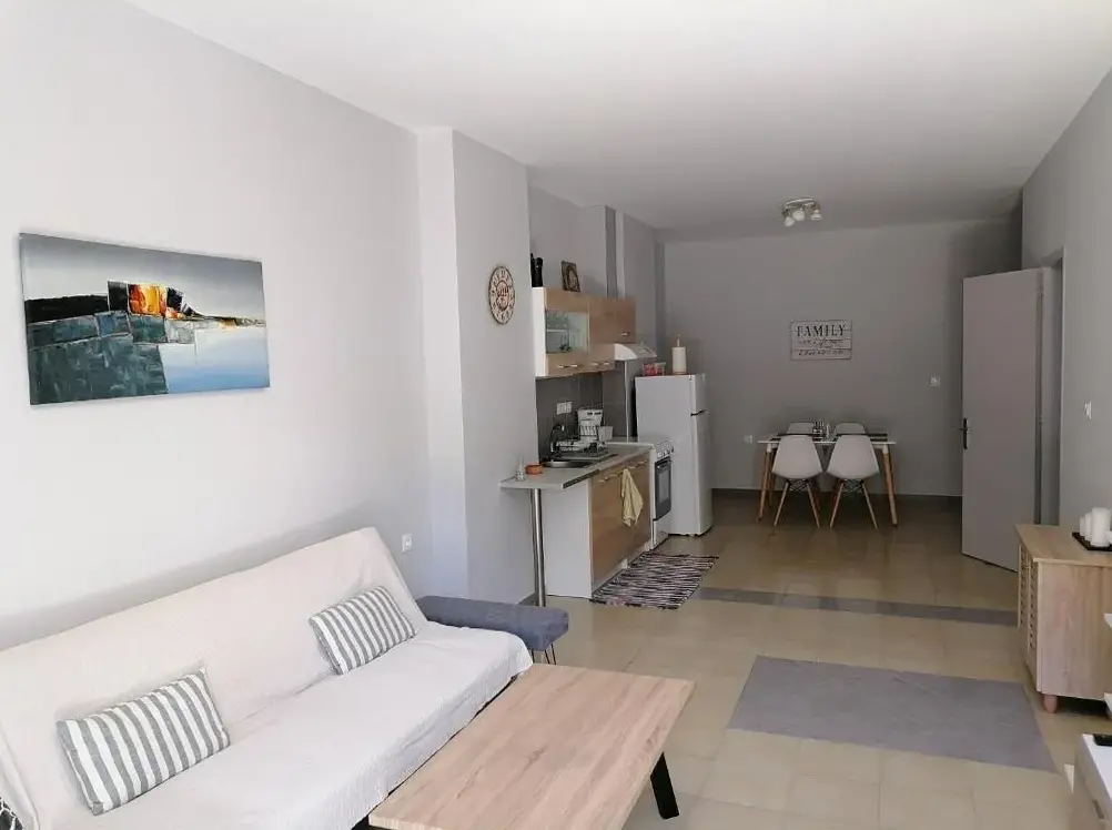 Spacious Accommodations: Johny Clara Apartment in Kos offers a spacious apartment with one bedroom and a living room. The ground-floor unit features a terrace and balcony with city views. Modern Amenities: Guests enjoy free WiFi, air-conditioning, and a fully equipped kitchen with a refrigerator, oven, stovetop, and toaster. Additional amenities include a washing machine, dining area, and work desk. Convenient Location: Located 15 mi from Kos International Airport, the apartment is a short walk from Lambi Beach (5 minutes) and Kos Port (1640 feet). Nearby attractions include the Tree of Hippocrates (8-minute walk) and Amphitheater (less than 0.6 mi). Highly Rated by Guests: Johny Clara Apartment receives high ratings for its spaciousness and excellent facilities. Reception staff speak Greek and English.